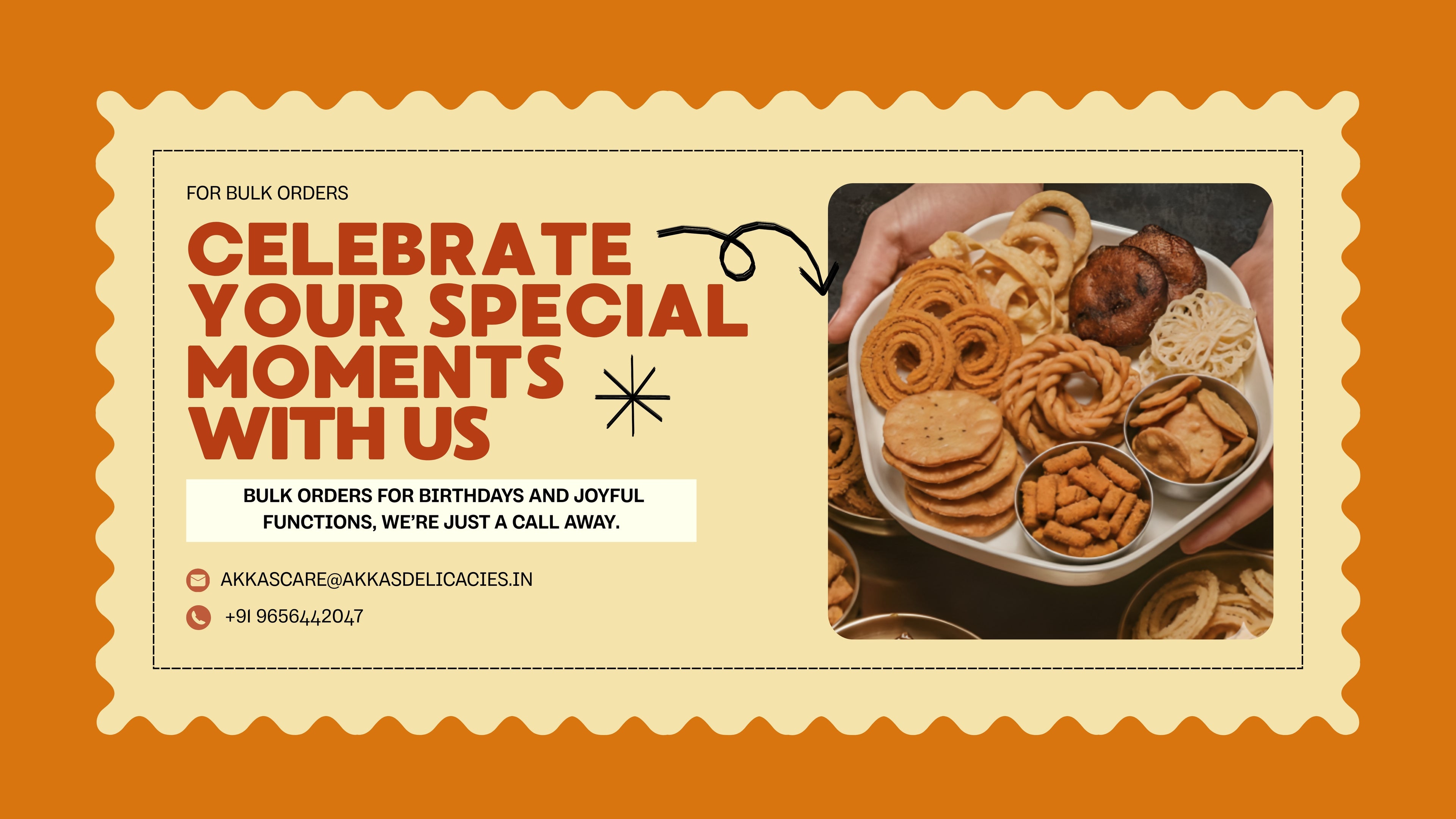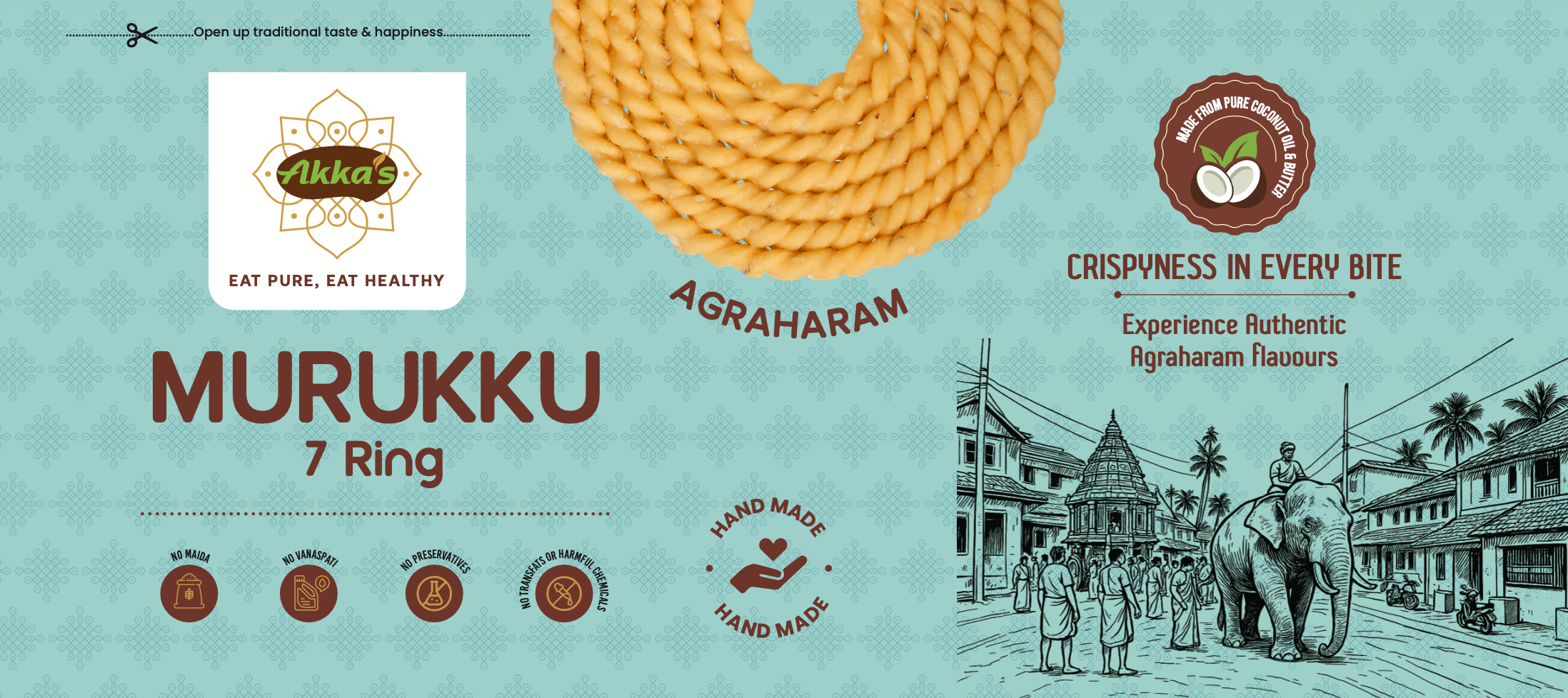 From that humble tea stall conversation, AKKA's was born. We dedicated ourselves to preserving and sharing the traditional murukku recipes that had been treasured in Palakkadan Agraharam households for centuries. Every batch we make carries the love, tradition, and authentic flavors that our ancestors perfected.